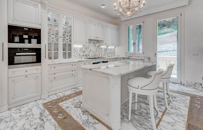 Construite sur 3 étages, cette spectaculaire maison de 545 m² comprend 4 chambres doubles chacune avec sa propre salle de bains, plusieurs dressings, un salon confortable, une grande salle à manger, une cuisine Miele séparée entièrement équipée avec un îlot, des terrasses spacieuses, et une salle de gym annexée à la chambre principale. Toutes les pièces principales jouissent d'une vue imprenable sur la mer et le Cap Ferrat. La magnifique Villa Ephrussi de Rothschild, qui appartient au gouvernement français, se trouve juste en face de la propriété, de l'autre côté de la baie. La célèbre Villa Leopolda, qui appartenait au roi de Belgique, est visible sur la gauche. La villa est orientée à l'est, donc si vous aimez le soleil matinal, vous serez la première personne à Villefranche à le savourer.