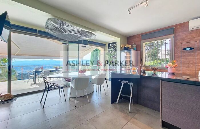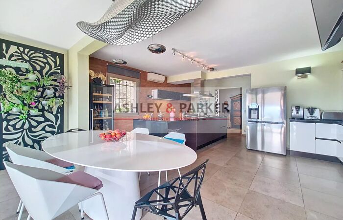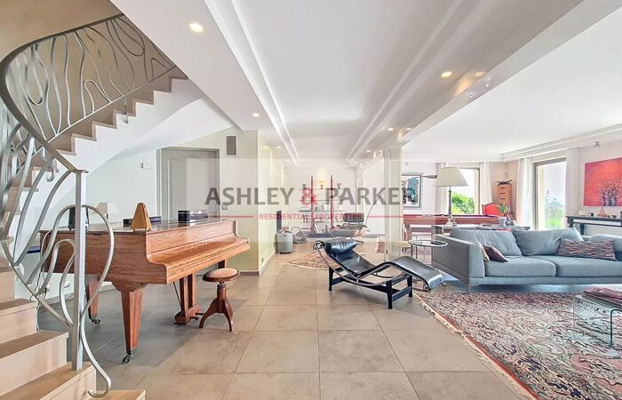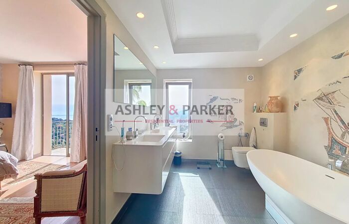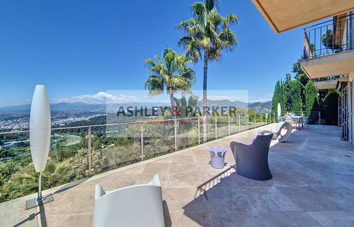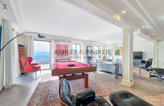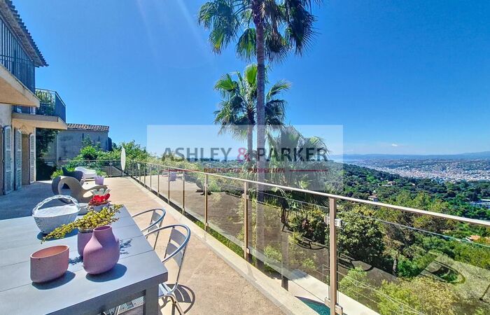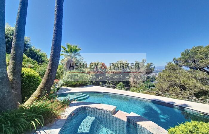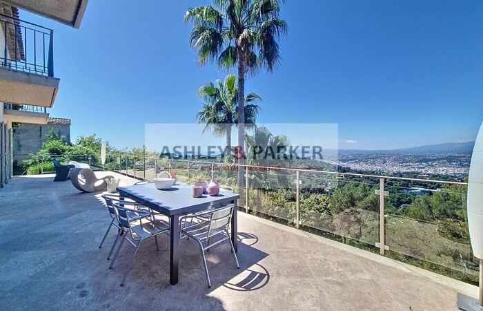 Villa 8 pièces NICE - MONT LEUZE / HAUT VILLEFRANCHE - SUPERBE VILLA 320M2 - VUE PANORAMIQUE MER ET COLLINES, PISCINE, TERRASSE, GARAGE A quelques minutes de la ville et au CALME absolu, dans un cadre VERDOYANT et en position la plus DOMINANTE, venez découvrir cette magnifique villa provençale sur 3 niveaux avec ASCENSEUR, exposée SUD/OUEST avec la VUE la plus SPECTACULAIRE sur Nice et ses environs. Elle se compose, au niveau centrale, d'un magnifique DOUBLE SÉJOUR de près de 80M2 avec cheminée, ouvrant sur une SUPERBE TERRASSE de 65m2 avec vue époustouflante de la mer aux sommets enneigés. Attenant au séjour vous disposerez d'un grand et BEL ESPACE CUISINE/salle à manger équipée de près de 50M2, avec accès direct sur la terrasse. Aux étages supérieurs nous retrouvons 4 CHAMBRES EN SUITE avec salles d'eau et balcons, ainsi qu'un grand bureau (ou chambre supplémentaire) Enfin, au niveau inférieur nous retrouvons une salle de sport avec SAUNA ET HAMMAM, ainsi qu'un grand espace de rangement (cave ou atelier) Concernant les extérieurs, vous pourrez profiter d'une MAGNIFIQUE PISCINE ENSOLEILLÉE avec de confortables espaces de détente, entourée de JARDINS FLEURIS et d'un terrain de près de 2500m2 clos et arboré. Un GRAND GARAGE de plus de 20m2 ainsi qu'un vaste espace de stationnement vous permettront de garer de nombreux véhicules. Proche de Monaco, Villefranche et de l'aéroport international de Nice, cette magnifique villa fera une parfaite RÉSIDENCE DE LUXE pour rayonner sur la Côte d'Azur ! A visiter
