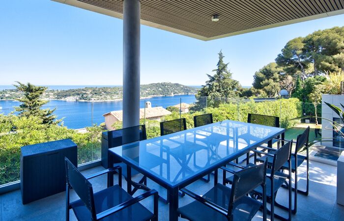 Nice Mont Boron, à deux pas du parc forestier et à 5 minutes de Villefranche-sur-Mer, découvrez cette somptueuse villa d'architecte au style contemporain. Située dans un quartier résidentiel calme, elle offre une vue époustouflante sur la baie et le Cap Ferrat.