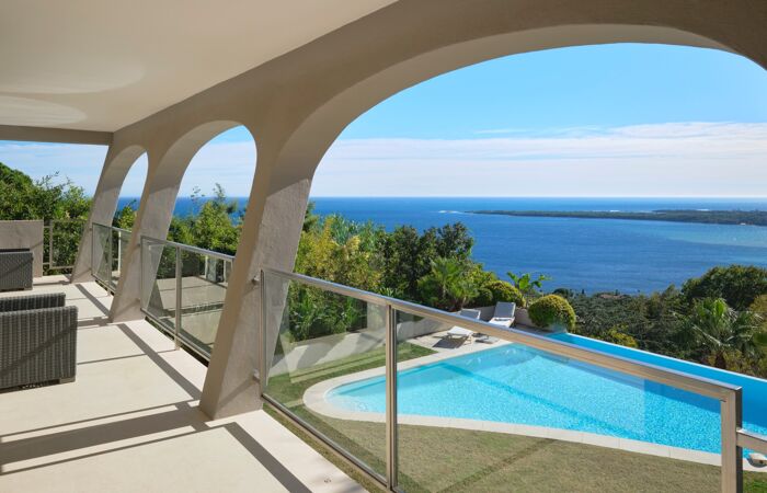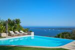 À l'extérieur, un jardin paysager, une vaste terrasse et une piscine à débordement offrent un cadre de vie unique avec une vue imprenable sur la mer. Une salle de sport indépendante de 50 m², équipée d'appareils EXCLUSIVEFIT, complète ce bien d'exception.