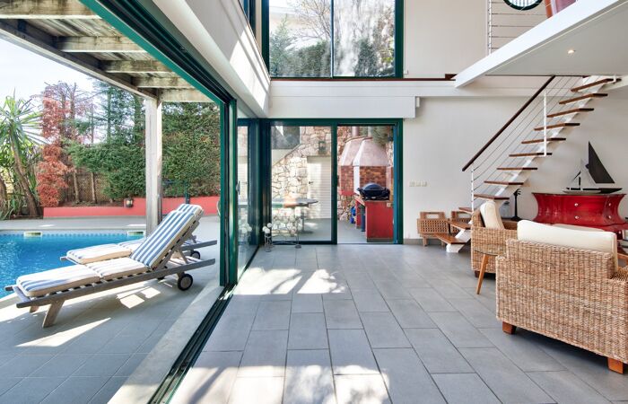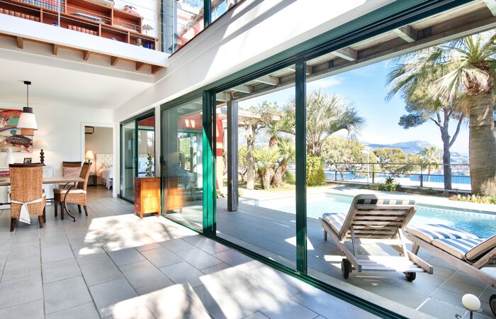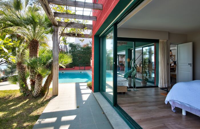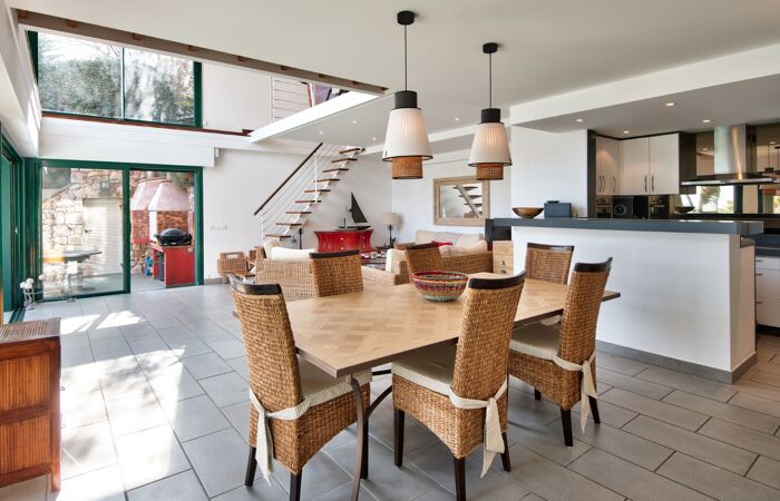 La villa se compose comme suit : Au rez de jardin, une pièce de vie lumineuse offrant une très belle hauteur sous plafond avec une cuisine américaine aménagée et équipée, une chambre principale avec une salle de bain attenante, dressing, petit local laverie et 2 WC, dont un d'invités. L'extérieur se compose d'une grande et agréable terrasse avec piscine et local technique ainsi que d'un jardin arboré avec coin barbecue. Le tout offrant une très jolie vue sur la mer.