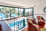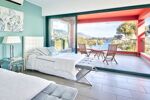 La villa se compose comme suit : Au rez de jardin, une pièce de vie lumineuse offrant une très belle hauteur sous plafond avec une cuisine américaine aménagée et équipée, une chambre principale avec une salle de bain attenante, dressing, petit local laverie et 2 WC, dont un d'invités. L'extérieur se compose d'une grande et agréable terrasse avec piscine et local technique ainsi que d'un jardin arboré avec coin barbecue. Le tout offrant une très jolie vue sur la mer.