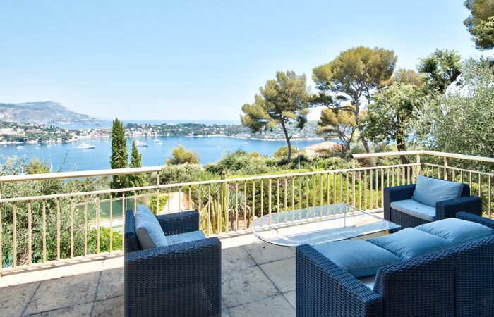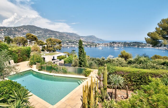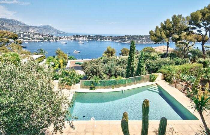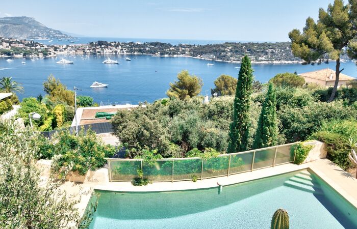 Offrant une vue mer à couper le souffle sur la baie de Villefranche-sur-Mer, cette propriété lumineuse exposée Est, vous séduira de par son élégance, ses volumes généreux et son emplacement unique.