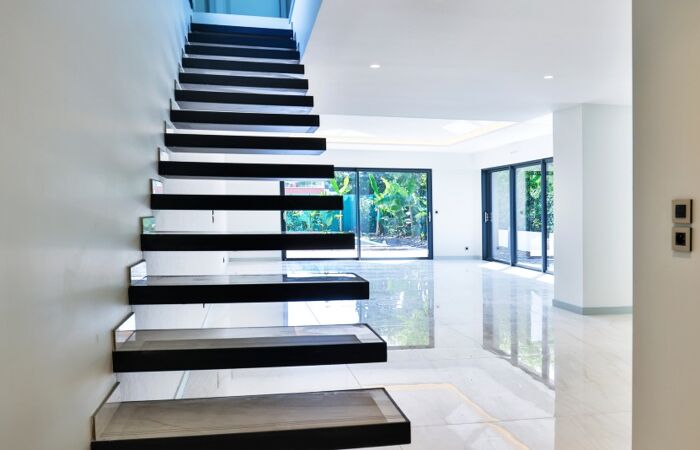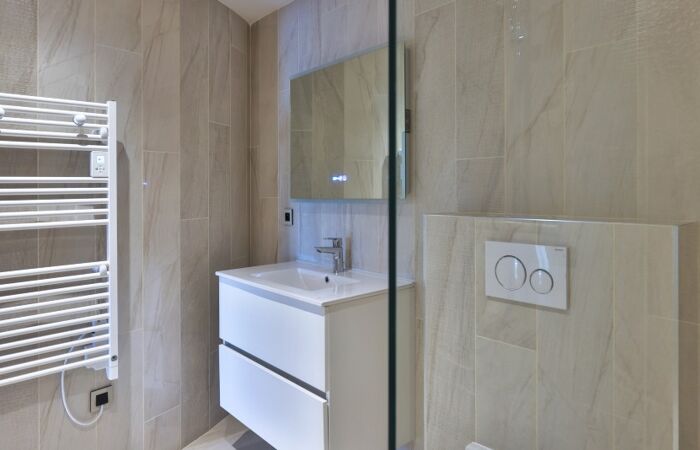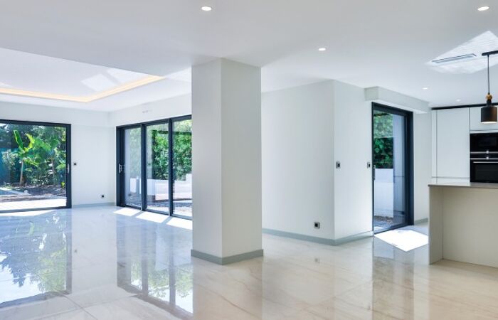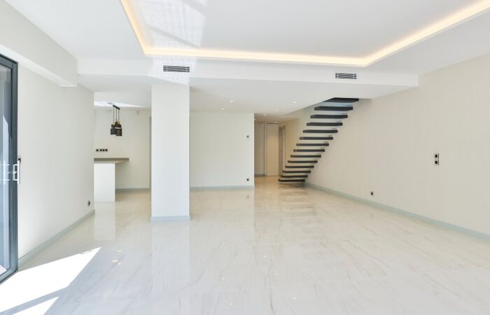 Saint Jean Cap Ferrat : Situé au cœur du village, au sein d'une copropriété nouvellement édifiée (livraison mi-septembre) composée de deux lots principaux, magnifique appartement de type 5 pièces en duplex (rez-de chaussée/rez de jardin), d'une superficie de 191 m², au calme absolu, proposant de très belles prestations, composé de la manière suivante :