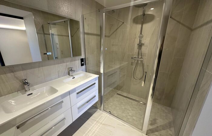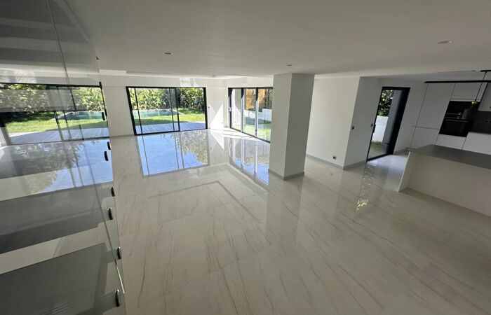 Saint Jean Cap-Ferrat Village / Appartement Villa en Duplex Unique: Saint Jean Cap-Ferrat village. Appartement duplex neuf dans une villa en copropriété. Surface habitable totale de 190 m², occupant le 1er étage et RDJ, avec un aperçu mer. Composé d’un séjour et cuisine US de 70 m² face au jardin avec piscine 4 chambres, 1 SDB et WC, 3 salle de bain et WC, 1 WC. 4 terrasses surface totale extérieure en rez de jardin de 242 m². 2 emplacements de parking. Bien soumis au statut de la propriété, honoraires charge acquéreur inclus dans le prix de vente.