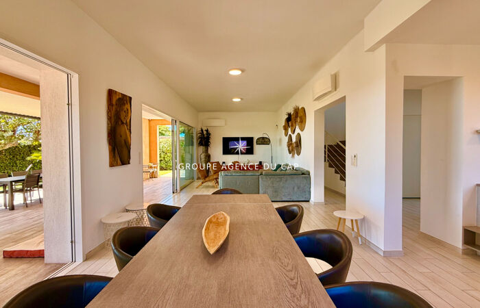 Avec ses 211 m², la villa conjugue confort et modernité : vaste pièce de réception baignée de lumière, salle à manger ouverte sur une terrasse couverte avec pergola bioclimatique, cinq chambres généreuses dont trois en suite, ainsi qu'une buanderie et pas moins de six toilettes japonaises. L'intégralité de la maison est climatisée, garantissant un confort absolu en toutes saisons.