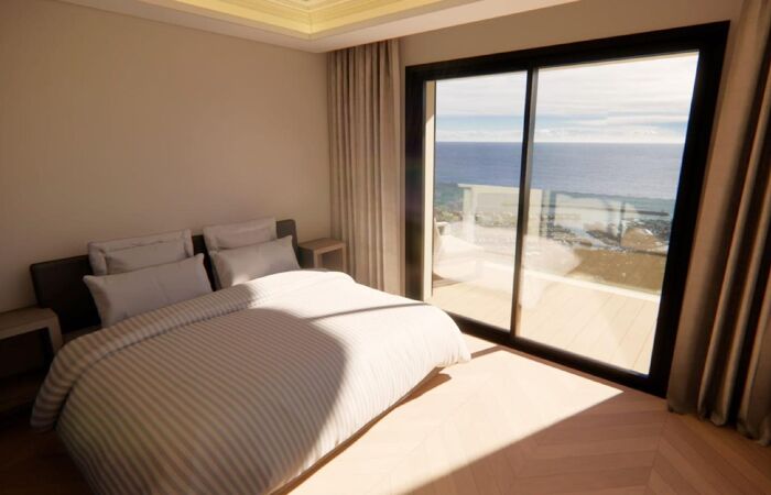 2 chambres en suite, chacune avec salle de bains et dressing, donnant accès à une terrasse