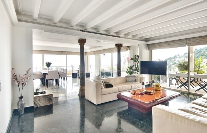 Appartement d'exception en dernier étage avec vue panoramique sur la mer et la vieille ville de Menton.
