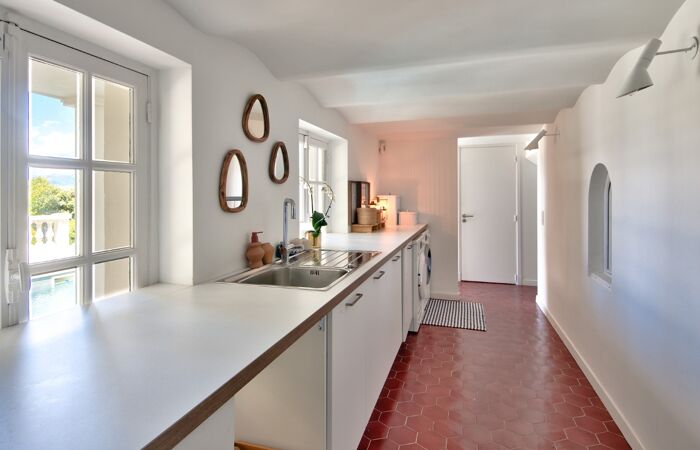 En rez-de-piscine, la propriété dispose d'un pool house, d'une chambre avec salle d'eau attenante, ainsi que d'un espace de rangement. Un profond garage et un emplacement de stationnement complètent ce bien rare.