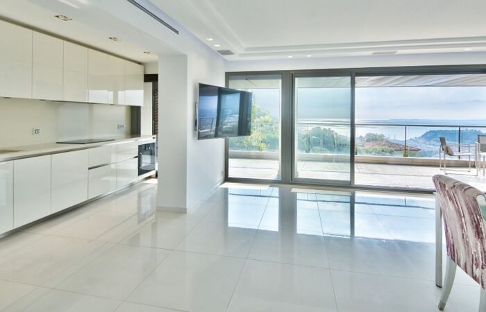 NICE EST- VILLEFRANCHE SUR MER, proche du Col de Villefranche , sur le secteur du Vinaigrier, à proximité de toutes les commodités, écoles et commerces, dans une résidence de standing récente avec piscine, bel appartement de 5 pièces. Il bénéficie d'une grande et belle terrasse d'angle et deux parkings couverts en sous-sol.
