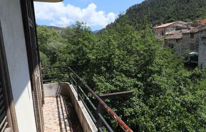Situé dans le village de l'Escarène, appartement 4 pièces de 84m² situé au 1er étage d'un immeuble de 2 étages. Ce bien offre un double séjour de 25m² avec cheminée et double exposition Sud et Est, une cuisine indépendante avec balcon, 3 chambres dont 2 avec balcon, une salle d'eau et un wc indépendant. A rénover totalement.