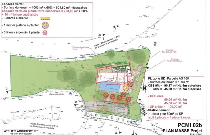 Terrain constructible de 1 000 m² environ vendu avec un permis de construire purgé pour la construction d'une maison sur 2 niveaux d'une surface de 135 m² environ avec une piscine.