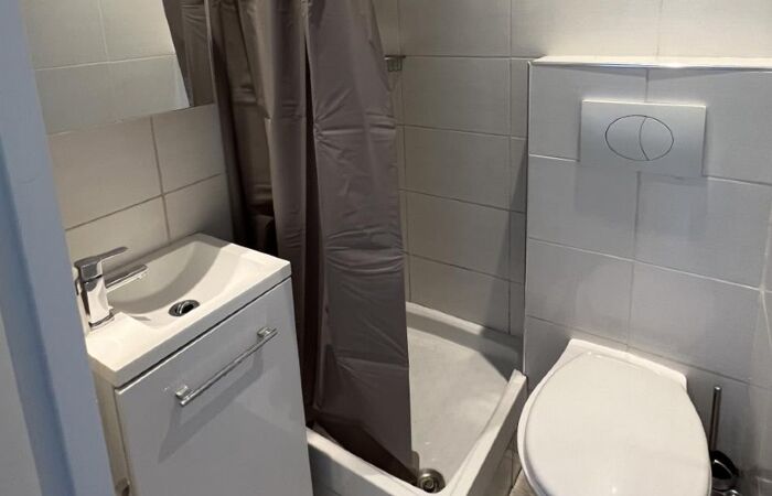 L'appartement se compose d'une petite entrée, d'une pièce à vivre avec un coin cuisine aménagé et équipé, d'un placard intégré, d'un canapé convertible pour le couchage et d'une salle de douches avec son toilette.