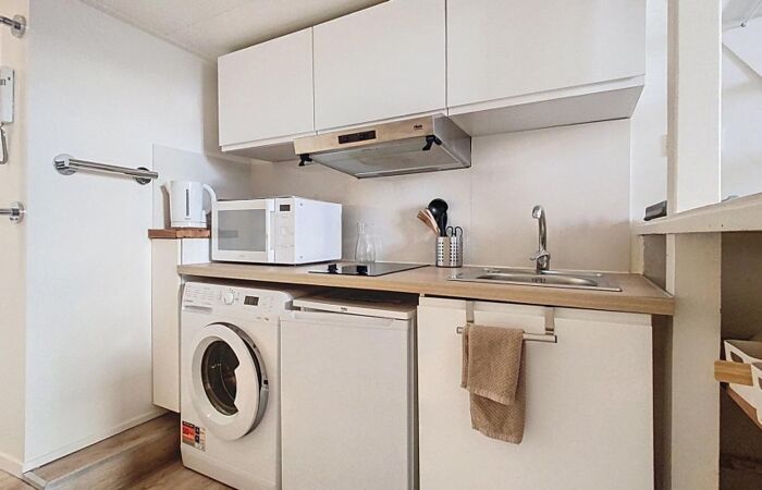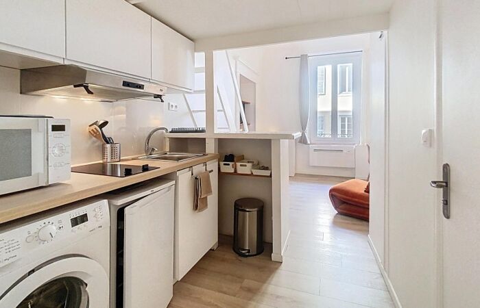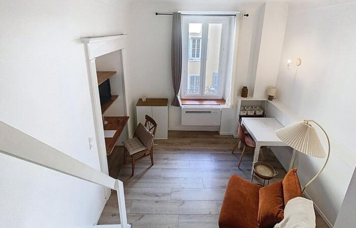Venez découvrir ce joli studio meublé qui comprend une entrée, une pièce principale avec mezzanine, une cuisine aménagée et équipée et une salle d'eau avec WC.