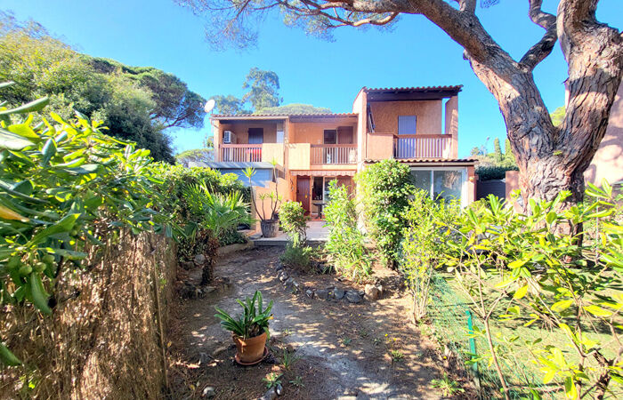A quelques pas de la mer et de la plage des Issambres et de ses commerces, dans une résidence privée, joli et coquet Mazet composé d'une entrée, kitchenette. Séjour/salle à manger, rangements optimisés sous escalier sur mesure. Le séjour est prolongé par 70m² de terrasse et jardin.