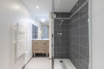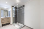 Appartement de 3 pièeces principales d'angle de 57,06 m2 . Comprenant : un séjour / cuisine ouverte de 21.24 m2, un couloir, une salle d'eau, un WC et deux chambres avec placards (12.18m2 et une autre de 9.32m2). Climatisation gainable dans toutes les pièces.