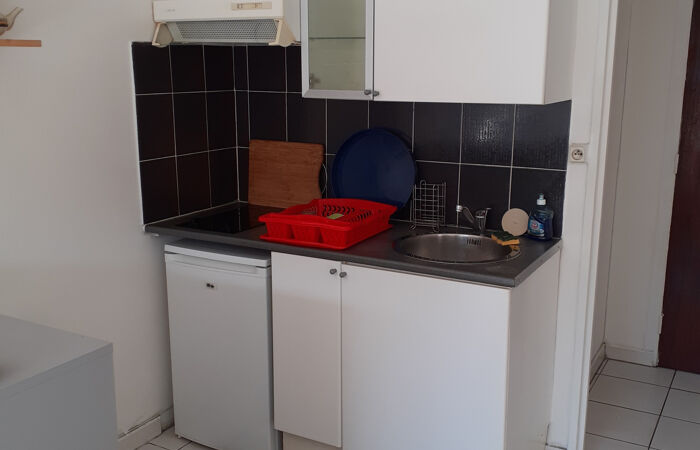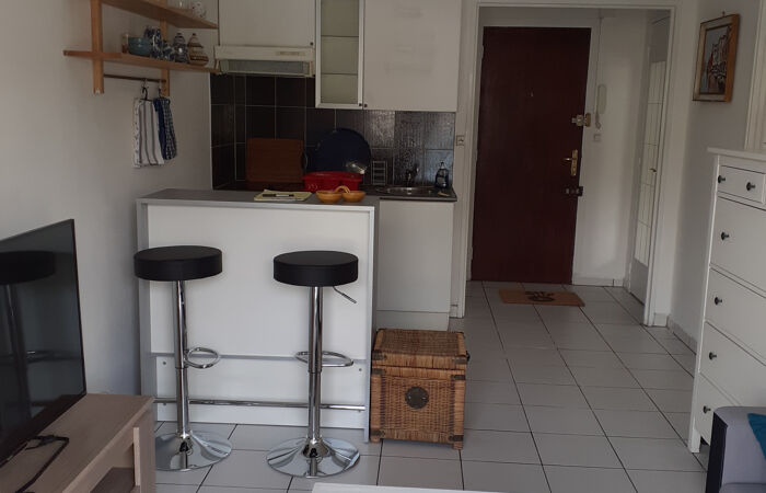 Au 5ème étage. Appartement meublé de 2 pièces princiàpales. Comptrenant une entrée avec placard, une séjour / cuisine aménagée et équipée (plaque de cuisson hotte aspirante refrigérateur lave linge), une chambre, une salle de bains et un WC.