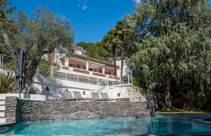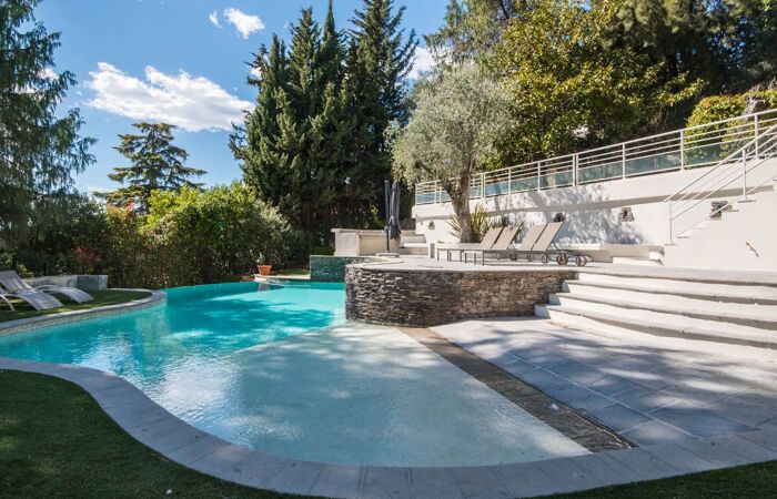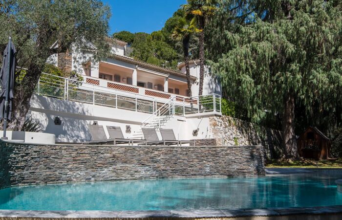 Vous profiterez d'une exposition sud-ouest offrant une vue dégagée sur la verdure et la mer. Une piscine à débordement vient parfaire cet environnement d'exception.