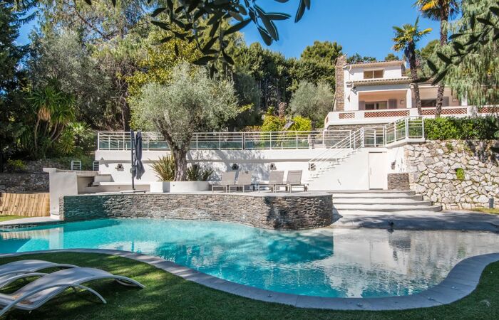 NICE – Cimiez : Villa parfaitement entretenue de 330 m² avec piscine, nichée au cœur du très prisé Parc Saint-Exupéry à Nice, domaine fermé, sécurisé et confidentiel, idéalement situé dans le secteur de Cimiez / Rimiez. Cette villa est implantée sur un terrain arboré et paysager de 2 560 m². Elle offre de beaux volumes et se compose actuellement, au premier niveau, d'une pièce de vie de près de 80 m² ouvrant sur la terrasse, ainsi que de 4 chambres, dont une suite parentale avec sa terrasse privative.