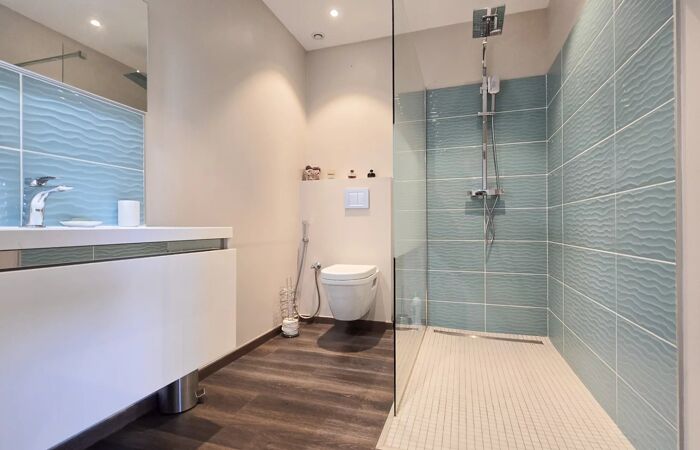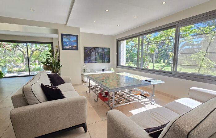 Appartement deux pièces meublé d'environ 66 m² en rez-de-jardin composé d'une cuisine indépendante aménagée et équipée, un grand séjour, une chambre, une salle de bains avec wc et un grand jardin.