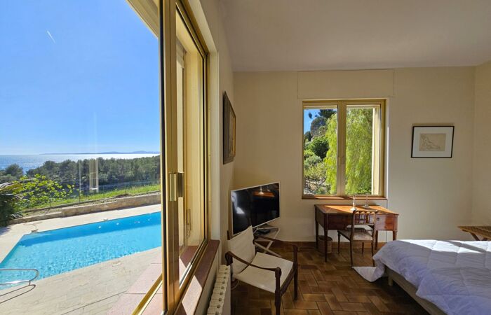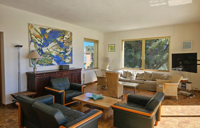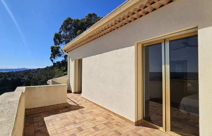 L'agence MILLESIME AGAY vous propose cette belle propriété de 9 pièces principales bénéficiant d'une vue panoramique sur la mer ainsi que sur les lacs du Dramont. D'une surface totale de 430 m², lle se compose d'une partie principale de plus de 270 m² ainsi que de surface annexes de plus de 170 m² totalisant ainsi qune surface utile d'environ 430 m². Elle dispose de 6 chambres principales ainsi que d'un bureau attenant au séjour, de trois salles de bains avec wc séparés et d'une cuisine totalement équipée. Sa piscine de grande taille dispose d'un pool house équipé d'une kitchenette. Son garage de 87 m² peut accueillir plus de 6 voitures et dispose d'un attelier annexe de plus de 20 m². Enfin elle bénéficie d'une dépendance d'environ 25 m² aménageable.