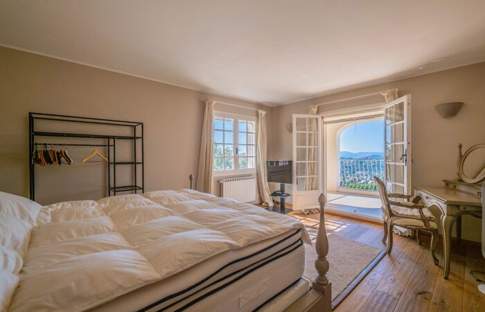 La propriété dispose de beaux espaces de vie lumineux avec cheminée, ouverts sur terrasses et balcon, d’une cuisine entièrement équipée, ainsi que de six chambres, toutes avec salle de douche ou salle de bains, dont une superbe suite parentale avec terrasse face à la mer.