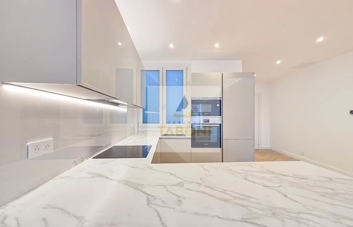 3 PIECES - FLEURS Avenue des Fleurs, au sein d’une jolie copropriété avec gardien, superbe appartement 3 pièces de 82,53 m² situé au 5ᵉ étage avec ascenseur. Il offre une splendide pièce de vie de 38,91 m² avec cuisine américaine entièrement équipée, ouvrant sur une profonde terrasse exposée plein sud et bénéficiant d’une vue dégagée. Deux belles chambres avec placards, dont une suite parentale avec salle d’eau attenante. Une seconde salle d’eau avec WC, un WC indépendant ainsi qu’un coin buanderie. Le dégagement a été aménagé en dressing pour un maximum de rangement. L’appartement a été entièrement rénové avec des prestations haut de gamme : double vitrage, climatisation gainable… Une cave complète ce bien. Réf. - Honoraires à la charge du vendeur - Nombre de lots dans la copropriété: 35 - Montant moyen de la quote-part de charges courantes 2 973 euros/an - Aucune procédure en cours (articles 29-1A/29-1 loi 65-557, L.615-6 du CCH) - Classe énergie 241 kWhEP/m².an (D) - Classe climat 21 kg CO2/m².an (C) - Montant estimé des dépenses annuelles d'énergie pour un usage standard, établi à partir des prix de l'énergie de l'année 2021 : 1630euros ~ 2210euros - TABONI TRANSACTIONS - Non-détention de fonds - SIRET 0040 - CPI 11342