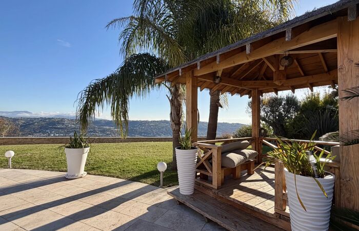 Saint-Laurent-du-Var - Montaleigne À seulement 15 minutes de l’aéroport international de Nice, venez découvrir cette magnifique villa contemporaine construite en 2012, nichée en position dominante à l’abri des regards et offrant une vue panoramique exceptionnelle sur les montagnes et la mer. Édifiée sur une parcelle de 3000 m² entièrement paysagé avec soin, la propriété offre 160 m² habitable, un garage ainsi qu’une dépendance, idéal pour recevoir ou exercer une activité indépendante. Dès l’entrée vous serez séduit par la superbe pièce de vie baignée de lumière, réunissant la cuisine entièrement équipée ouverte sur le séjour et la salle à manger, sublimée par de large baie vitrée ouvrant directement sur le jardin et la piscine au sel chauffée. Le salon est également équipé d’un poêle à granulés et toutes les pièces de la villa bénéficie de la climatisation, pour un confort optimal tout au long de l’année. Le coin nuit offre une suite parentale de plain-pied avec salle de douche et WC ainsi qu’un grand dressing. À l’étage on retrouve trois chambres, chacune ouvrant sur une large terrasse permettant de profiter pleinement de la vue sur la mer et les montagnes. Une salle de bain ainsi qu’un WC complète ce niveau. La villa bénéficie de prestations haut de gamme : alarme, vidéosurveillance, panneaux photovoltaïques, ballon thermodynamique permettant ainsi un excellent DPE classé A, portail électrique, adoucisseur d’eau… Les informations sur les risques auxquels ce bien est exposé sont disponibles sur le site Géorisques : https://georisques.gouv.fr Pour toutes demandes d'informations et visite, merci de contacter Manon ABATE au +33650454567