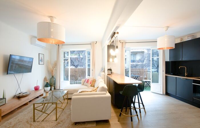 L'espace nuit comprend deux chambres, dont une au calme absolu pour finir l'appartement dispose d'une salle de douche avec WC.