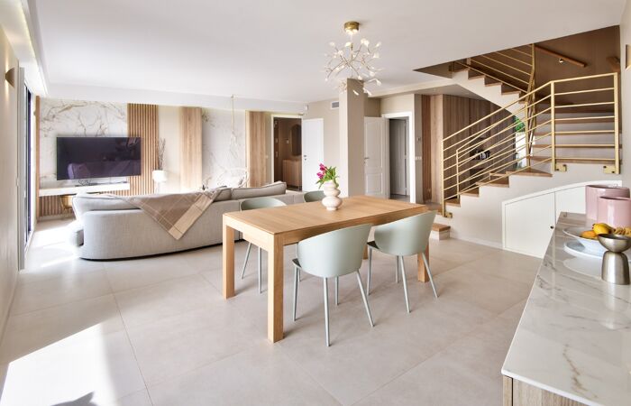 Villefranche-sur-Mer, dans le secteur prisé du Col, découvrez ce somptueux appartement 4 pièces en duplex de 131 m² entièrement rénové avec goût, offrant un cadre de vie exceptionnel, à vivre comme une maison.