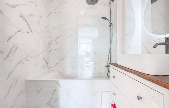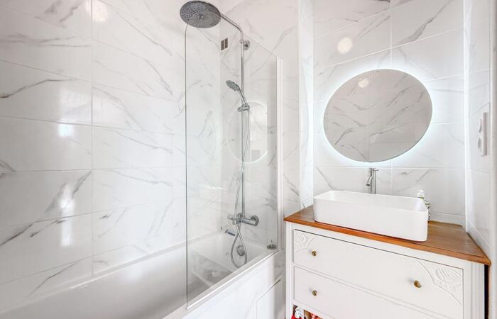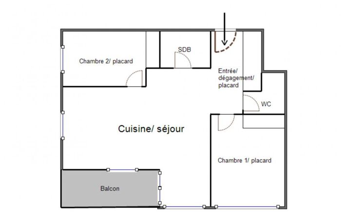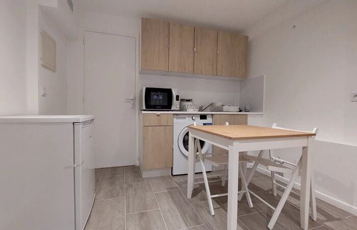 Il est composé d'une entrée, d'un séjour avec une cuisine aménagée et équipée de marque Mobalpa donnant sur un balcon (avec store), 2 belles chambres avec chacune leur placard, une salle de bain, et un WC indépendant. Il est équipé de la climatisation réversible.