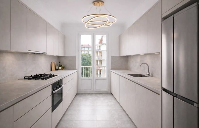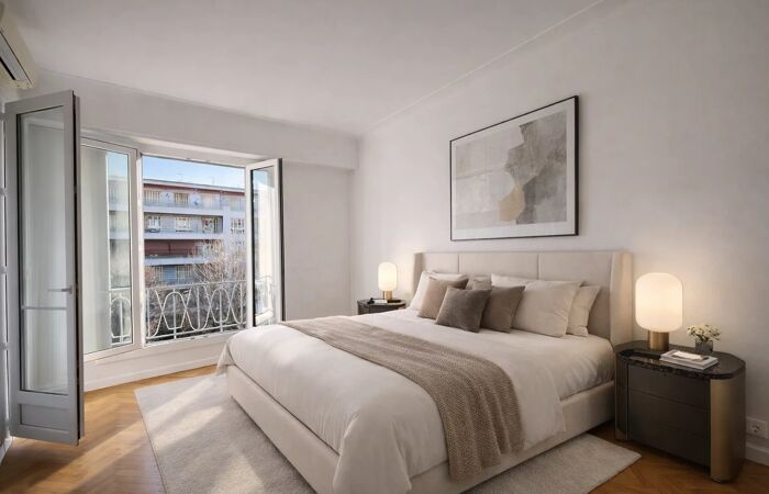 RARE – NICE DUBOUCHAGE 3 PIÈCES AVEC TERRASSE PROFONDE, JARDIN & VUE DÉGAGÉE – PLEIN SOLEIL Nice Dubouchage, emplacement ultra central et recherché, superbe appartement 3 pièces en étage élevé, au sein d’une résidence de standing sécurisée avec jardin arboré. Bien exceptionnel et très rare en centre-ville, offrant une terrasse profonde réellement exploitable, une vue dégagée, une orientation plein soleil, tout en étant à proximité immédiate du tramway, des commerces et des plages. Volumes généreux, belle hauteur sous plafond, parquet originel en pointe de Hongrie, bon état général. Deux chambres, avec possibilité de créer une seconde salle de douche. L’appartement combine des prestations de très belle qualité. Il bénéficie d'un double vitrage haut de gamme de type Schuco, offrant une isolation optimale. La climatisation réversible garantit un confort en toute saison, et pour encore plus de praticité, les volets et le store sont entièrement électriques. Ainsi, chaque détail a été pensé pour allier confort moderne et raffinement. Un bien unique réunissant extérieur, verdure et centralité, rare à Nice. A voir absolument !!! Photos actuelles complétées par des projections 3D photoréalistes, illustrant des propositions d'aménagement haut de gamme. Les informations sur les risques auxquels ce bien est exposé sont disponibles sur le site Géorisques : georisques.gouv.fr Pour toutes demandes d'informations et visite, merci de contacter Philippe VAN DEN BROECK au +33699481012