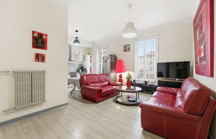 Situé au 2ᵉ étage d'un bel immeuble bien entretenu, ce bien entièrement rénové en 2017 se compose d'un séjour lumineux avec cuisine ouverte équipée, de trois chambres, d'une salle de bains ainsi que d'un WC indépendant.