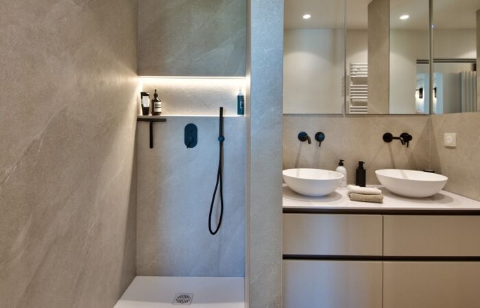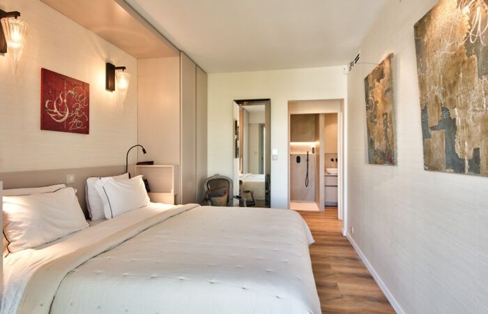 L'appartement est climatisé, récemment rénové dans un style moderne et épuré, entièrement meublé et équipé.