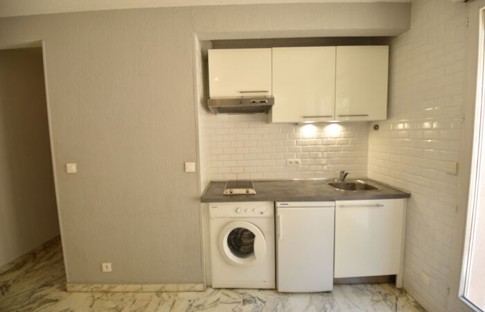 Studio de 23,40 m2. Meublé. Bon état. Comprenant une entrée, une pièce principale / cuisine aménagée et équipée (plaque de cuisson + hotte aspirante + micro-ondes + refrigérateur + lave linge), une salle d'eau et un WC individuel.