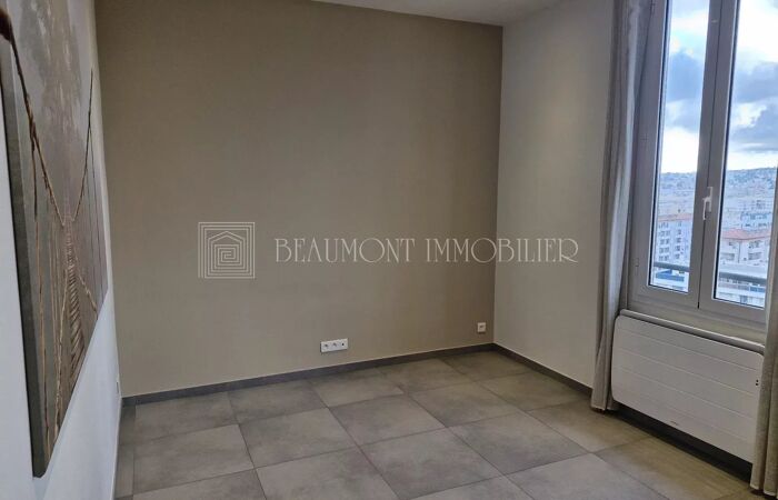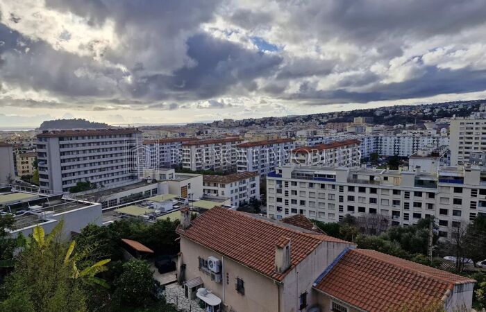 Nice Grande Corniche, bel appartement en dernier étage d'une petite maison Niçoise de 6 appartements. Vue panoramique sur la ville, grand séjour sur cuisine aménagée, belle chambre, salle de douche tendance. Au calme des collines, accès tramway facile. loyer 845 euros + 15 euros de charges.