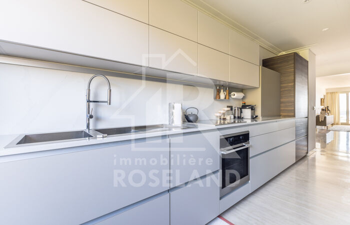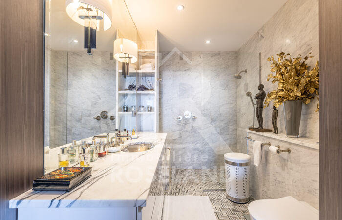 Très bel appartement de 3 pièces principales de 104 m2. Meublé. L'appartement est composé d'une entrée, d'une cuisine entièrement aménagée et équipée, d'un vaste séjour de 37 m2, d'une premiere suite de 25 m2 avec chambre, placard et salle d'eau / WC, d'une seconde suite de 20 m2 avec chambre, placard et salle d'eau / WC et d'un WC individuel avec lave mains.