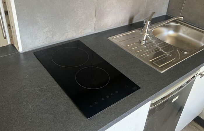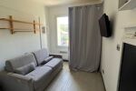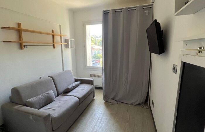 L'appartement se compose d'une petite entrée, d'une pièce à vivre avec un coin cuisine aménagé et équipé, d'un placard intégré, d'un canapé convertible pour le couchage et d'une salle de douches avec son toilette.