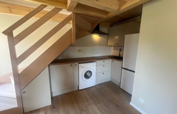 Appartement en duplex de 33,75 m2 au sol. Comprenant un séjour / cuisine aménagée et équipée, une salle d'eau / WC et une chambre. Entièrement rénové.