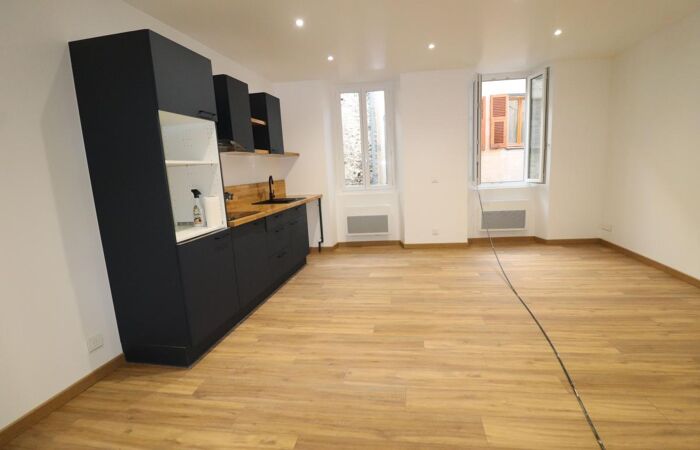 Sur la comme de L'ESCARENE, appartement deux pièces entièrement rénové et en parfait état composé d'un séjour avec cuisine ouverte, une salle de douche avec wc, une chambre avec coin dressing à aménager.