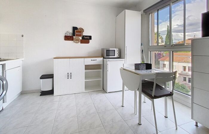 Venez découvrir ce joli studio meublé qui comprend une entrée, une pièce principale avec kitchenette aménagée et équipée et une salle d'eau avec WC. Vous profiterez d'un environnement idéal avec des transports en commun à proximité, notamment le tram et les bus, ainsi que de nombreux commerces, restaurants et cafés à quelques minutes à pied. Le quartier offre également des espaces de loisirs, et des jardins, pour un cadre de vie dynamique et agréable.