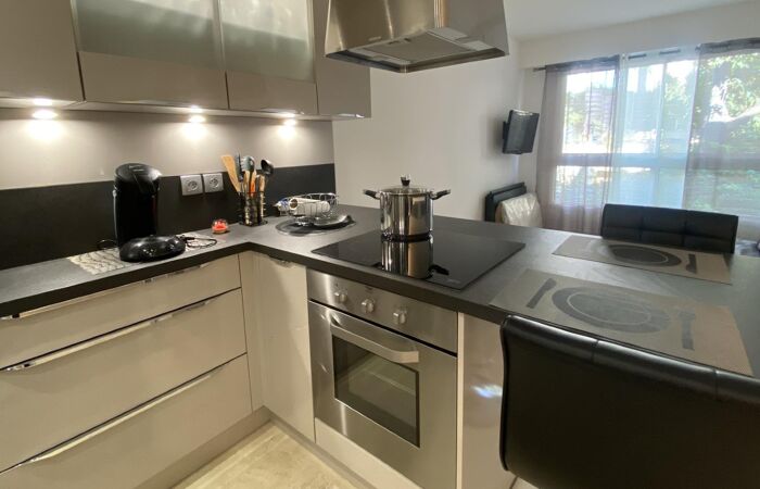 Charmant studio entièrement rénové de 25 m², disponible à la location longue durée, situé au 3ᵉ étage d’un immeuble dans un quartier calme et sécurisé. Il se compose d’une entrée avec rangements, d’une pièce principale lumineuse avec cuisine de standing entièrement aménagée et équipée, et d’une salle de bains avec WC.