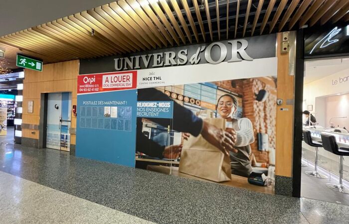 Idéalement situé au centre commercial de Nice TNL, ce local avec vitrine de 55.29m² comprend une pièce principale, une réserve et un WC.