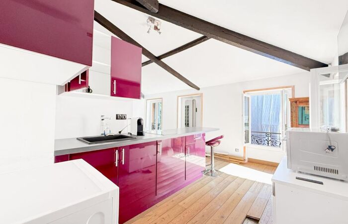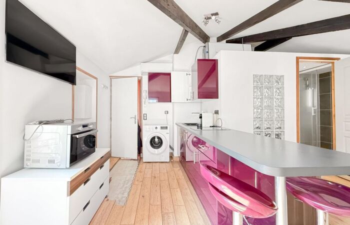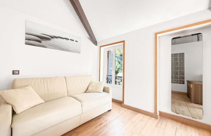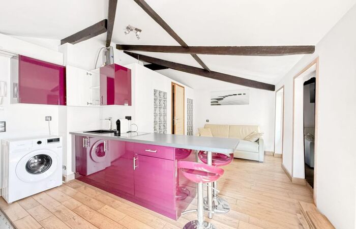 Studio de charme situé au 2ᵉ et dernier étage sans ascenseur d'une copropriété niçoise bien entretenue. très lumineux et très calme, il comprend une cuisine ouverte aménagée et équipée, une salle d'eau avec WC, une climatisation réversible, double vitrage et électricité conforme. Tout individuel, faibles charges. Bon emplacement, idéal premier achat ou investissement locatif. Seul la réfection du parquet est à prévoir.