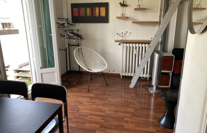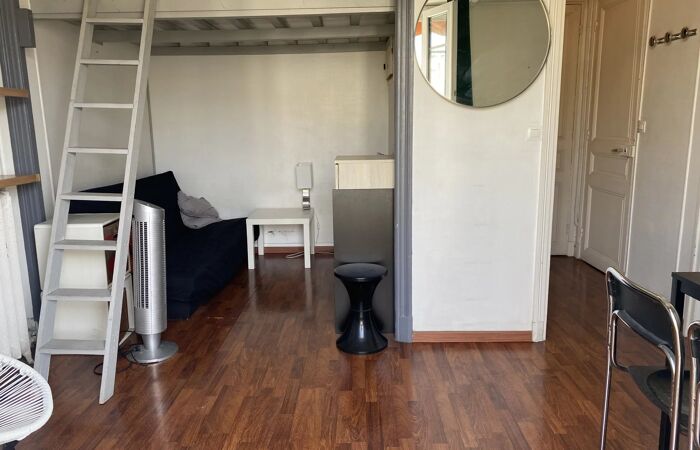 Dans immeuble bourgeois, charmant F1 de 24 m2 en 5ème et dernier étage avec ascenseur, belle pièce de vie avec mezzanine, cuisine indépendante aménagée, salle de bains avec WC et Terrasse de 7 m² orientée Sud/Ouest. A visiter rapidement !