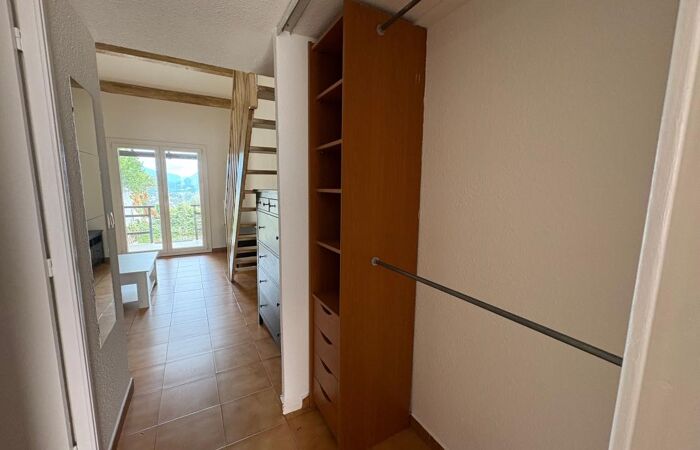 Dans le haut de Pessicart, dans une résidence avec piscine, jolie petite maisonnette de 28.54 m² de 2 pièces. Elle se compose d'une entrée, une cuisine indépendante aménagée et équipée (plaque, four), un séjour donnant sur une terrasse avec jardin avec une vue sur les collines, une chambre en mezzanine sous les toits, une salle de douche avec wc. EDL (état des lieux) inclus.
