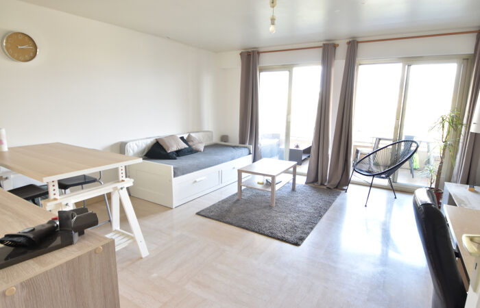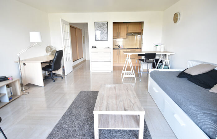 Un grand studio de 36 m2. Vide. Comprenant une entrée avec placard, un séjour de 22 m2, une cusine aménagée et semi équipée (plaque de cuisson + hotte aspirante + four + refrigérateur / congélateur) et une salle de bains / WC.