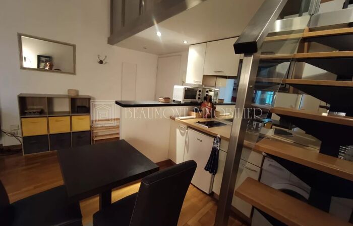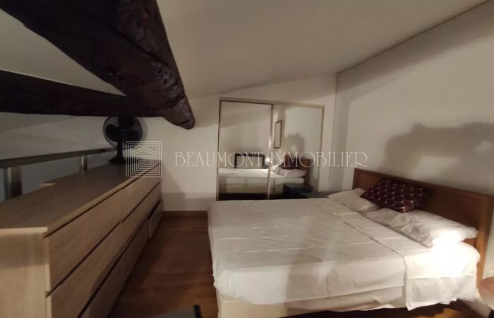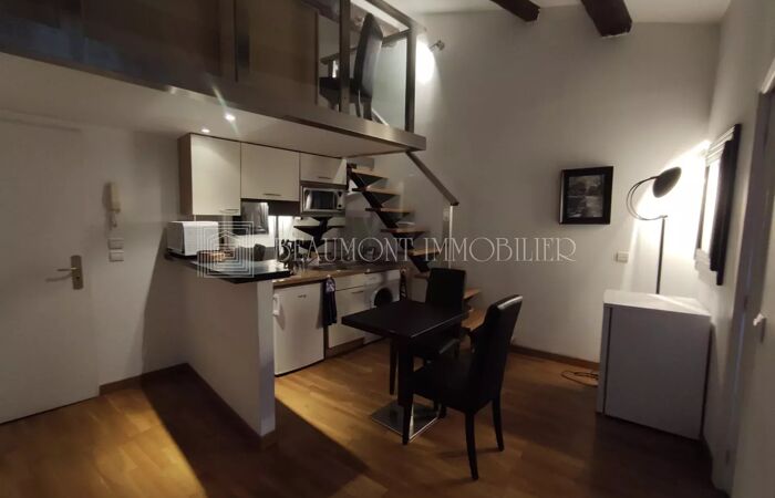 EXCEPTIONNEL ! PLACE MASSENA. En dernier étage 2 Pièces meublé et équipé de bon standing. 3eme étage. ascenseur. calme sur cour. coin cuisine équipé. chambre en mezzanine. salle d'eau avec wc. climatisé.