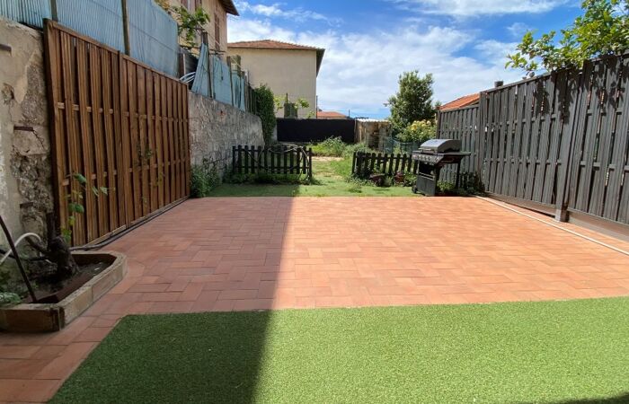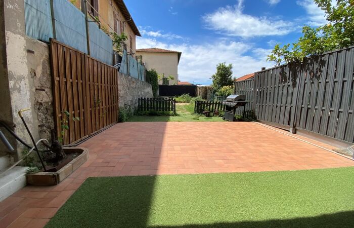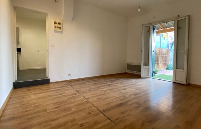 L'appartement se compose d'une entrée, d'un séjour ouvrant sur une terrasse et son jardin de 100 m² environ, d'une cuisine indépendante aménagée et partiellement équipée, de 2 chambres avec placards, d'une salle de bains, d'un toilette séparé.