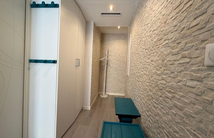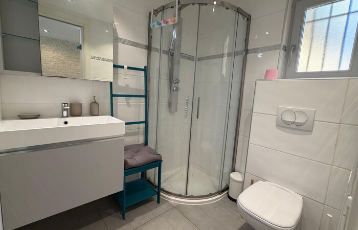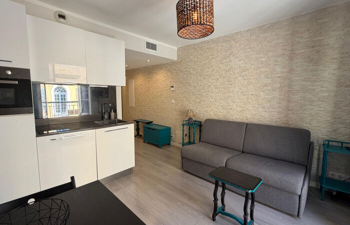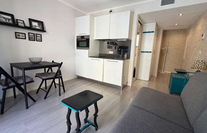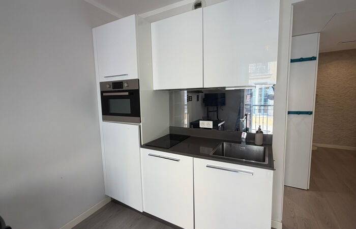 Studio de 21 m2. meublé. Comprenant une entrée avec placard, un séjour / cuisine aménagée et équipée (plaque de cuisson + hotte aspirante + four + lave linge + lave vaisselle) et une salle d'eau / WC